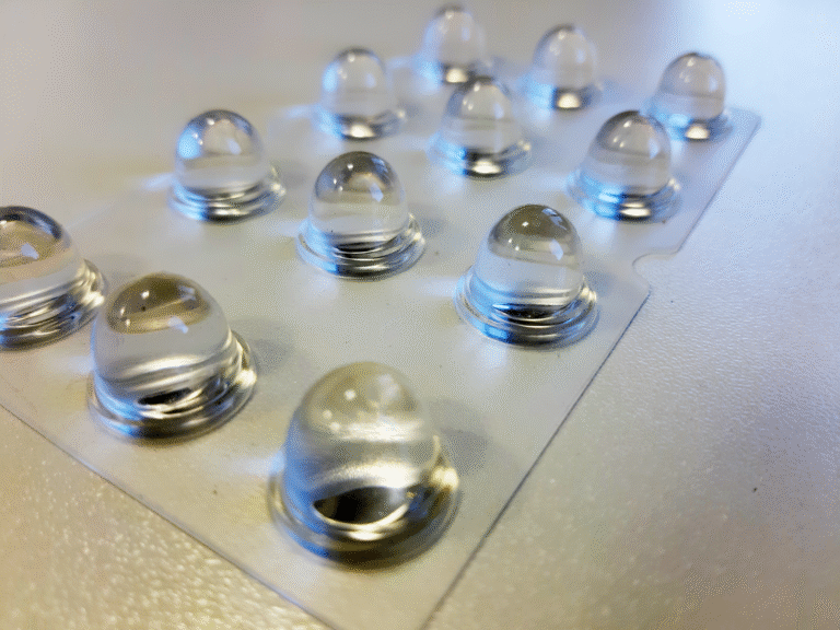 Almost all manufacturers who use lenses make them in PMMA; a good quality thermoplastic technopolymer which in any case has a transparency of 86-88%, even the polycarbonate or methacrylate diffusers do not exceed 85%. Even the extra clear glass does not exceed 92% transparency and in any case, for reasons of glare, it must be satin finished or combined with reflectors, with further losses.